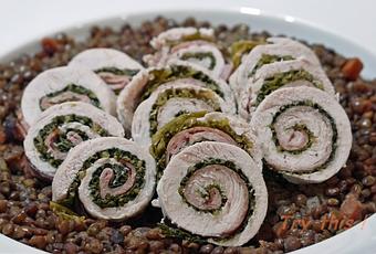 Mettre les lentilles dans un plat de service. Déposer les tranches de dinde dessus. Servir.