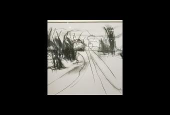 La salle du rez-de-chaussée suffira à votre bonheur! Vous avez là des paysages au fusain dont la force tient à un fil! Un fil très noir qui s’étire ou s’embrouille … et c’est tout. Charlotte Tommy-Martin a cheminé dans la campagne anglaise et a retenu ces éphémères impressions. Son bâton de fusain n’en dit pas trop. Sait s’arrêter à temps. Laisse des blancs. Et soudain, c’est un arbre, un buisson, un sentier, une colline… Ou pas! Peut-être juste une idée de paysage ! Ou un haïku de paysage ! Par ces quelques traits, posés avec énergie, on pénètre dans un espace intime qui pourrait bien être un paysage intérieur, au delà de la british country!