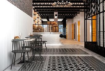 Oh, que je suis fan de la déco de cette boulangerie .... regardez ce sol !!!!
