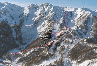 Ajoutez à cela le fait que ce « ruban » bien qu’extrêmement glacé est parfaitement raboté, qu'il y a très peu d'arbres le long du parcours, le spectateur a donc du mal à apprécier les difficultés du terrain ainsi que la vitesse, car il manque de repères visuels, en particulier sous « le jour blanc » qui caractérisait cette compétition.
