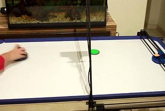 Le gars a dépiauté une imprimante 3D pour reconstituer un adversaire coriace au air hockey. C'est du pur Pong, vous savez le séminal jeu vidéo auquel on jouait dans la grotte de Lascaux des années 70. Il a même programmé sa bécane en trois modes de jeu : défense, contre attaque, attaque.