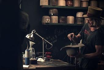 Mi humain , mi-animal, Nick est Français et fait partie des derniers fabricants de chapeaux! Boho, vintage ou complétement psyché, il les travaille un à un, à la main, à l’ancienne dans son atelier d’Abbot Kiney à Venice. Ils aiment que ses chapeaux soit usés, patinés, alors pour se faire il les aide un peu en leur mettant le feu!