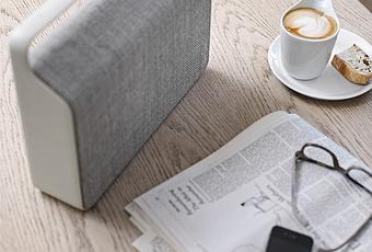 Associé à Kvadrat, expert en textile, Vifa tente d’allier aluminium et touché agréable pour l’ajout de tissus.