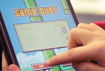 Je télécharge donc la bête, puis commence à jouer. Au bout d’à peu près cinq minutes, j’ai envie de jeter mon iPad contre le mur. Sans déconner, ce jeu est insupportable non ??? Que de frustration ! Et puis j’ai compris. C’est justement tellement frustrant que la satisfaction de battre notre propre record nous rend accro.