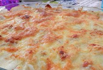 Faire cuire et gratin à four préchauffé à 200 / 210°C - chaleur tournante pendant environ 20 minutes.