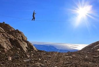 Manu Pellissier, valeureux guide de haute montagne, converti au slackline sans modération revient d'une expédition en Antarctique.Pour occuper les nuits éclairées de l'été, il s'est équipé au camp de base quelques highlines - midlines.