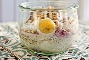 Pour les matins pressés au boulot ou en cours, on priorise un repas qui se prépare rapidement au lever du lit et qui se transporte dans le sac à main! C’est encore une combinaison peu connue qui gagne teeeeellement à trouver sa place dans votre horaire surchargé. Les « overnight oats » se transportent dans un pot Masson, réunissent 3 groupes alimentaires essentiels au premier repas de la journée et se préparent la veille. Un must try!!
