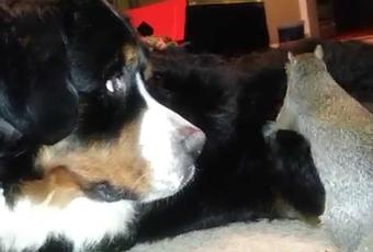 J'avais vu passer cette vidéo la semaine dernière mais je ne l'ai pas postée. Entre temps, elle a eu 5 millions de vues. Pas mal. Il est mimi ce petit écureuil apprivoisé qui tente de cacher sa noisette dans les poils de ce brave bouvier bernois, animal placide er gentil à la manière de Belle.