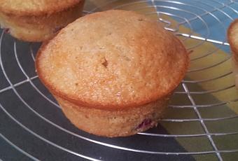 Verser dans des moules à muffins en incorporant quelques framboises dans chaque muffin