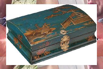 Photographie de gauche : « Boîte de toilette, Anonyme, Paris, vers 1750, Bois, préparation, laque bleue, décor en
