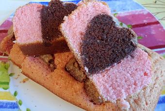 Aujourd’hui, jour de la saint valentin, je vous propose un cake tout beau tout rose avec un cœur au chocolat!!