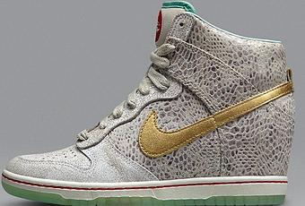 Cette édition célèbre le nouvel an chinois qui est placé sous le signe du cheval de bois cette année. Les sneakers compensées ont un upper en cuir craquelé et cuir façon python skin contrastés par des touches de turquoise, de rouge et par un swoosh en cuir doré. Une semelle extérieure translucide verte complète le look.
