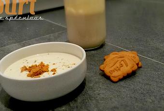 Le blog À table et vous m'a bien inspirée, plusieurs de ses recettes me tentaient ... Mais il fallait en choisir une seulement ... J'ai nommé les yaourts à la pâte de spéculoos ! :)
