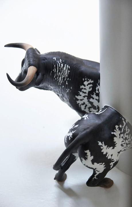 La prestance de l'animal, le rendu du modelé, le " peint main " du pelage tacheté brillamment rendu m'ont fait imaginer comment cette pièce, presque muséale, pourrait se vivre au présent.