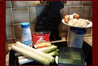 . Dans une poêle, mettre 40 G de beurre et ajoutez les poireaux émincés, laissez mijoter doucement (ajoutez un peu d’eau au cours de la cuisson ou un peu de vin blanc sec)