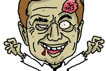 Croqué en zombie, car il était mort-vivant au niveau politique,