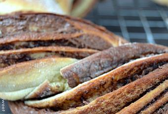 - Dégazer la pâte et étaler-la en un long rectangle.