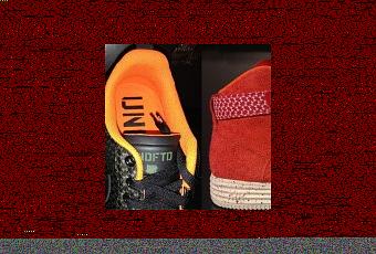 UNDFTD et Nike se sont associés pour concevoir deux paires de Nike Lunar Force 1. La première est une lowtop qui arbore les couleurs signatures d’UNDFTD. Elle dispose d’un dessus à motif traditionnel écossais noir et vert contrasté par un swoosh en cuir noir, une doublure orange et une semelle Lunar blanche mouchetée.