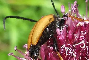 Le Lepture rouge (Stictoleptura rubra ou Corymbia rubra) est un Longicorne à élytres jaune pâle (mâle) à rouge orangé (femelle), commun à proximité des forêts (lisières, clairières ...) où les femelles pondent leurs œufs dans du bois mort.