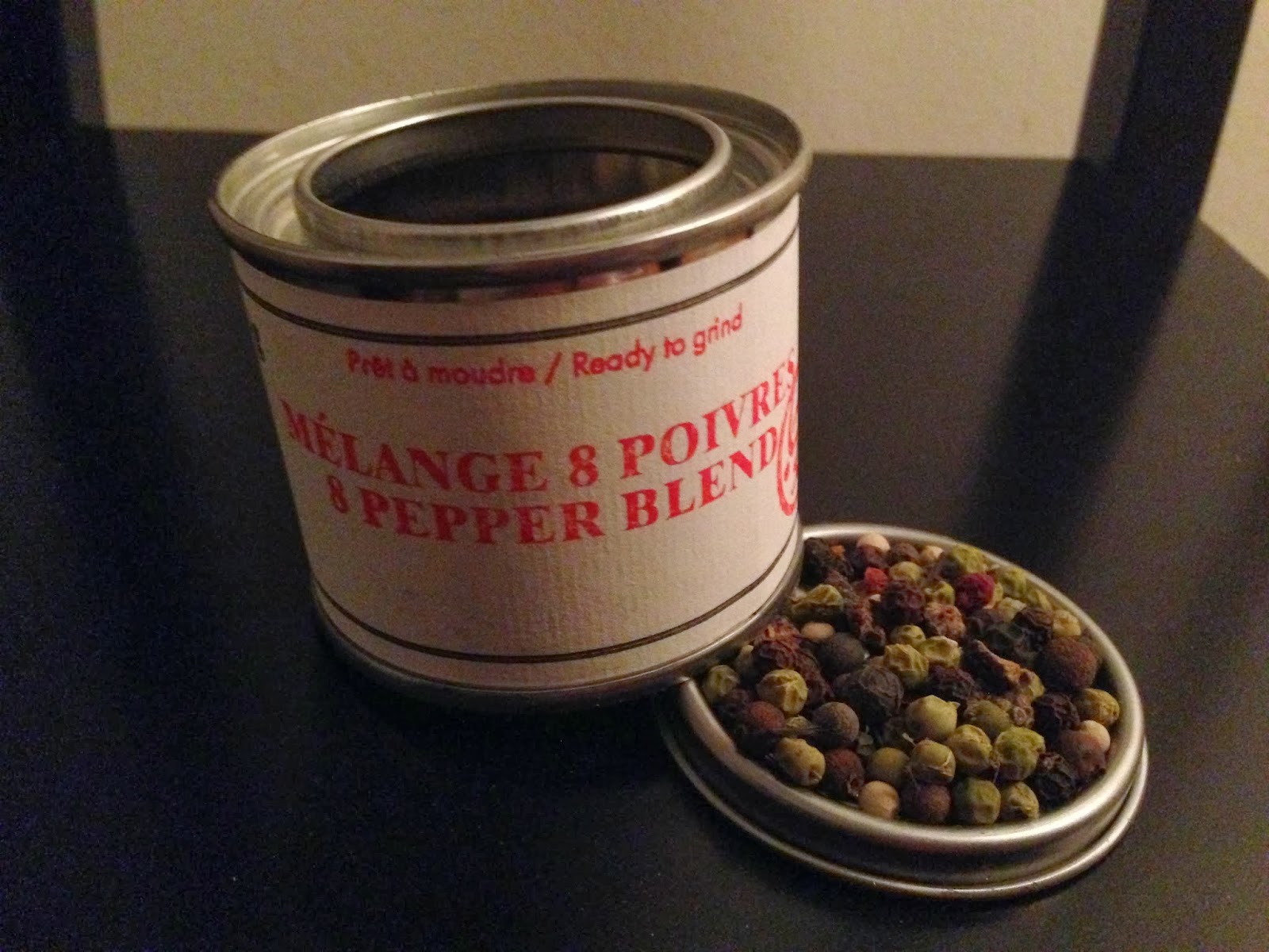 - sel, poivre, épices (mélange 8 poivres à moudre), piment d'espelette