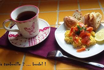 Je vous propose donc aujourd'hui "Les œufs brouillés au saumon fumé façon tambouilleuse".