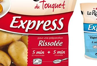 Au micro-ondes, à la poêle ou à la vapeur, la Ratte du Touquet a toujours milité pour la gastronomie. Alors pour les plus pressés de ses amateurs, elle a renouvelé et rajeuni son écrin malin : le sachet de cuisson express. Conçu pour permettre de cuire des Ratte du Touquet en 6 minutes à la vapeur, il est aussi idéal pour réaliser en 10 minutes chrono des pommes de terre rissolées fondantes à l’intérieur et craquantes à l’extérieur !