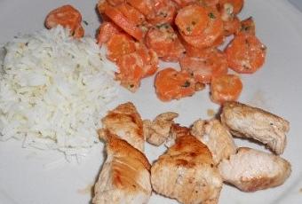 Pour un plat équilibrer, allier légumes, féculents et protéines animales: voici une petite idée vite prête.