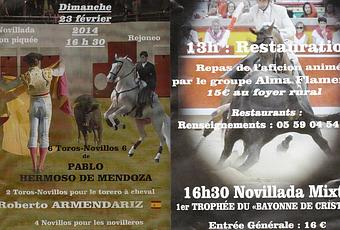 Une novillada mixte ce dimanche à Arzacq avec le rejoneador Roberto Armendariz pour 2 novillos, la nouvelle vedette du genre et 3 novilleros ayant déjà triomphé qui se disputeront le gain d'un 4ème novillo. Et les novillos seront ceux de Pablo Hermoso de Mendoza qui fera sa présentation en France.
