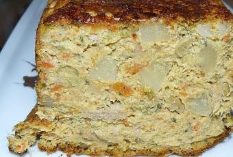 cake, légumes, thon, oeuf, crème soja, chapelure