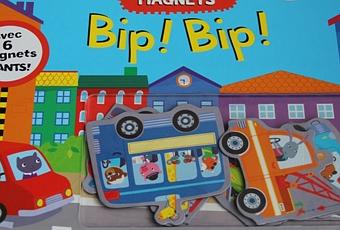 Bip ! Bip ! Super Magnets est un livre très coloré parfait pour les enfants passionnés de transports comme mini Tino. Chaque double page présente une grande scène à découvrir avec les divers types de transport. Il est vendu avec 6 magnets géants.