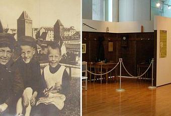Le petit winstub reconstitué au centre de la salle est étonnant, des tables en attente d’être débarrassées, un manteau et un chapeau suspendus là, oubliés par leur propriétaire ; le temps s’est arrêté un instant pour donner l’illusion de la vie quotidienne strasbourgeoise.