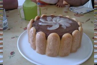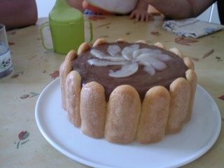 Voici une recette faite il y a bien longtemps et que je ressors qu’aujourd’hui, une charlotte poire chocolat