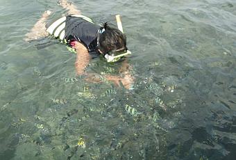 Beaucoup de poissons en pyjamas et, vers la rive quelques belles raies