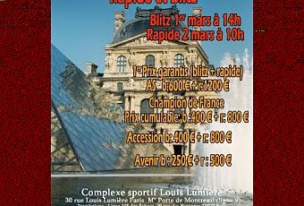Après le succès du championnat des jeunes, la ligue d'Ile-de-France des échecs reprend le concept et décline ses traditionnels internationaux de Blitz en mode R&B. Toujours spectaculaires, les parties en cadence Rapide & Blitz vont attirer de nombreux amateurs. Ce Championnat de France Rapide et Blitz se déroulera du 1er au 2 Mars 2014 au stade Louis Lumière à Paris 20ème.