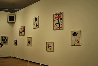 Mais cette expo avait ceci d’intéressant qu'elle reconstituait l'exposition 0.10, qui voit la naissance du suprématisme. Elle proposait également de visionner un opéra expérimental, Victoire sur le soleil... Malevitch en a dessiné les costumes. Plongée dans l'absurde. Ce qui était étonnant aussi, c'est tout ce qui concernait les cours qu'il pouvait donner. Entre mathématiques et art.