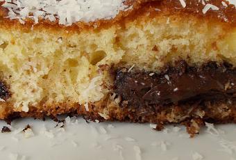 Dans un plat allant au four préalablement huilé, versons la moitié de la préparation. Ajoutons les bananes coupés en rondelle, le chocolat coupés en morceau et parsemons de noix de coco. Pour finir, recouvrons du reste de la pâte. Au four pour 40 minutes à 180°.