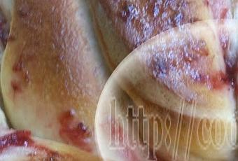 Laisser lever 2 heures, etaler la pate, ajouter la confiture. Rouler la pate ( comme si vous realisiez un gateau roulé ) Couper en deux dans le sens de la longueur. Faire une torsade et former une couronne.