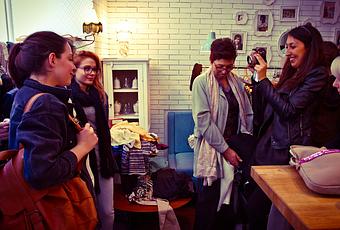 La matinée passe en un éclair, les filles se succèdent, on ne voit pas le temps passer. Notre petite cagnotte commence à grimper et nos portants se vident en à peine une heure. On s’inquiète pour les filles qui souhaitent passer dans l’après midi « mon dieu, mais on aura plus rien à leur proposer ! ».Les filles d’Emilie’s Cookies sont des amours, elles nous aident, prennent sur elle car leur beau cocoon de zenitude est en train de vivre un véritable enfer, et nous offrent de bons cookies bien moelleux et smoothie frais pour nous donner de la pèche. On instagram, twitt, poste sur facebook tout ce qu’on peut, on parle de nos blogs à tout le monde, on donne des cartes de visites timidement.