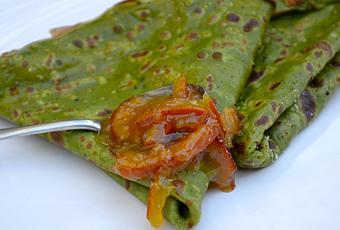 Si la crêpière accroche, l’essuyer de nouveau avec le papier absorbant beurré.