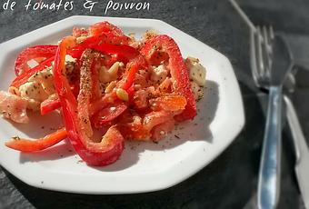 On a la chance d'avoir eu, hier, un grand soleil et une douce chaleur printanière. Alors pour se mettre dans cette ambiance un peu estivale, je nous ai concocté une bonne petite salade, toute en fraîcheur. Rien de très compliqué : poivron, tomates, feta, quelques petites herbes, et le tour est joué ! Et qu'est-ce que c'est bon ...