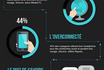 L’overconnecté : 44% des voyageurs utilisent leur smartphone pour des recherches avant et pendant leur voyage. (Source : JiWire Report).