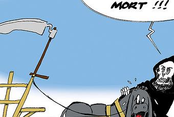 Devant votre sympathique – et encourageant- enthousiasme pour les dessins mettant en scène l’Ankou (que d’aucuns appellent la Mort, la Grande Faucheuse ou la Camarde), j’ai décidé de lui donner vie plus souvent, ou en tout cas, paradoxalement, lorsque quelqu’un d’un peu connu meurt.