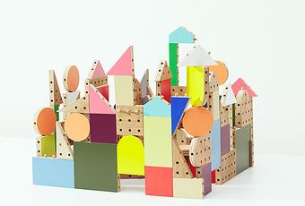 Initier les plus petits à la construction, le studio vous propose ce kit composé de différentes formes de pièces de bois colorées et chevilles pour les fixer l’une à l’autre. (Petite question sécurité sur l’utilisation des chevilles tout de même).