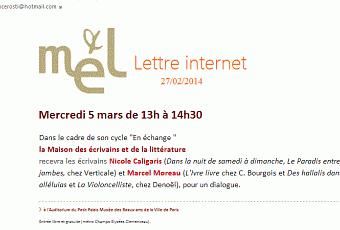 M E L Maison des écrivains et de la littérature Mercredi 5 Mars 2014