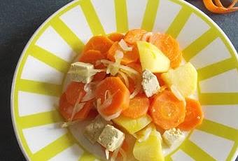 Ma cocotte de Tofu aux carottes et aux pommes de terre est bien appétissante.