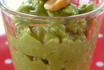4° Garnissez des verrine de cette crème d’avocat aux cacahuètes. Réservez au frais.