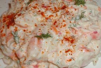 Ajoutez l'aneth Répartissez la préparation dans des cercles à dresser posés sur les assiettes de service. Retirez délicatement les cercles Saupoudrez de paprika et. Servez bien frais.