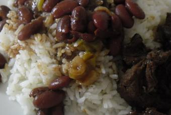 Le plat du jour, plat de base de l'alimentation dominicaine, compose de riz blanc, de haricots rouges et de viande (boeuf, poulet ou encore du porc, mais le poulet est la viande la plus frequente et surtout la moins chere).