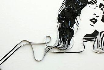 Erika Iris Simmons est une jeune artiste autodidacte qui aime travailler avec des matériaux étranges et inhabituels. A l’heure des cartes mémoires, des disques dur et des Ipod, les bandes cassettes audio et vidéo sont devenues obsolètes. Cette artiste a trouvé le moyen de donner une seconde vie aux cassettes. Elle reproduit des visages et des corps de stars à l’aide de ces cassettes. Cela donne des portraits très impressionnants. La série est baptisée “Ghost in the Machine” et on y retrouve des portraits de stars telles que John Lennon, Kurt Kobain, Lenny Kravitz, Michael Jackson, Bob Marley, Marylin Monroe et encore bien d’autres.