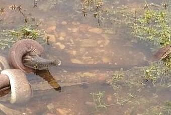 Dans les eaux du lac Moondarra, dans l’état du Queensland (Australie), un python long de 3 mètres a avalé sans grande difficulté un crocodile d’environ 1 mètre. Des touristes ont photographié cette scène insolite de la nature.